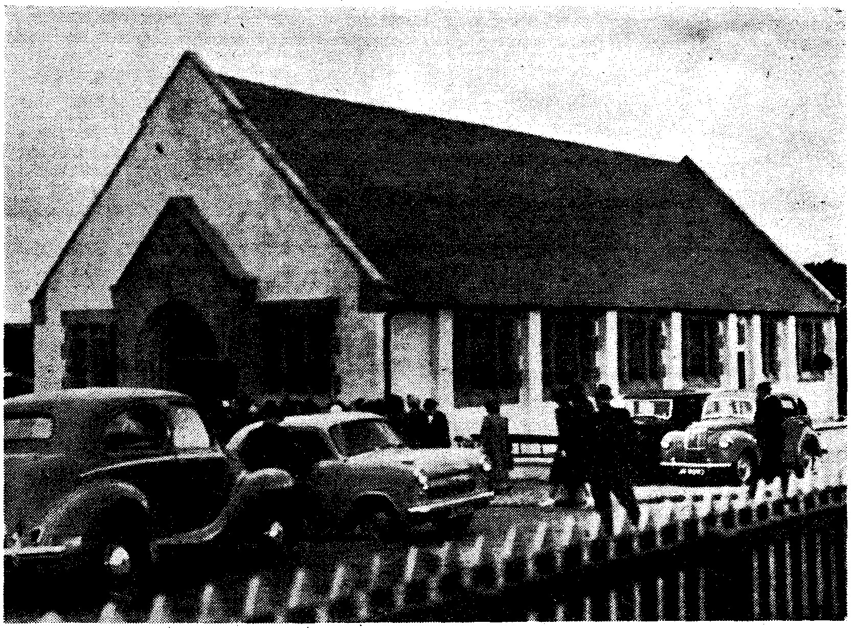The time came when the main structure was complete, the roof on, the wiring installed, and then the voluntary workers took over. Mr Henry MacDonald and Mr Jack MacLennan of the congregation installed over 500 panes of glass, set up the pulpit, and did most of the work of laying the beautiful parquet-type floor of African hardwood blocks which had been decided on in preference to the concrete floor which is all that regulations allow. When this floor had been laid, it was sanded and wax-polished also by voluntary labour, the fine seats of pitch pine from Strathpeffer were set up, the painting and varnishing completed, and the outside surroundings of the building tidied up and so preparations were completed, once the electric heating radiators had been installed, for the opening of the new church.